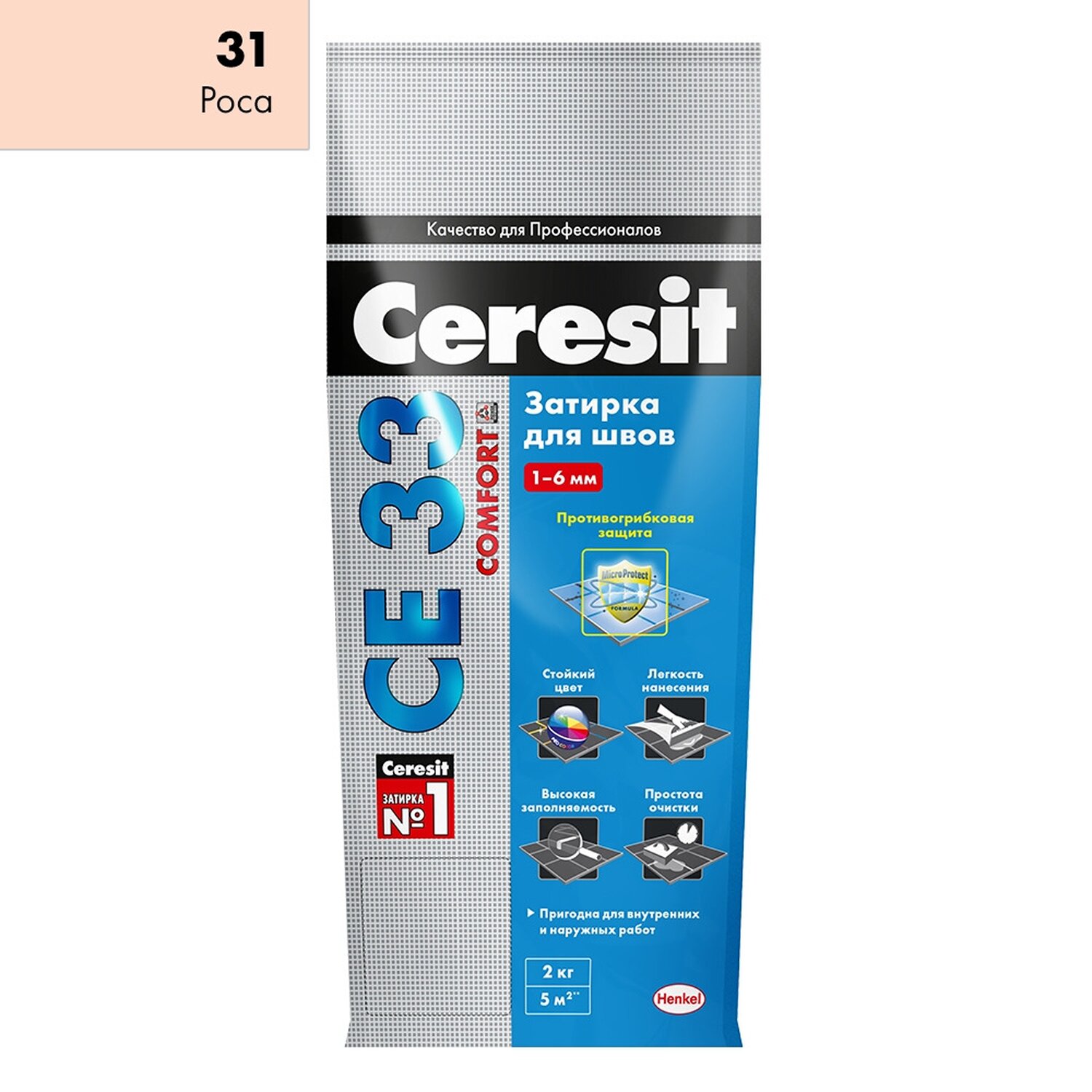 Затирка для швов цементная Ceresit СЕ 33 Comfort роса 2 кг