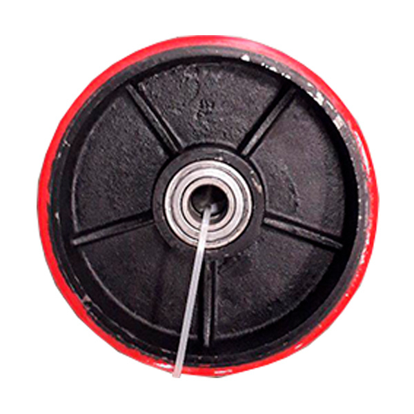 Рулевое полиуретановое колесо D 180 с цельнолитым чугунным ободом.Диаметр колеса - 180 мм,ширина обода - 50 мм.