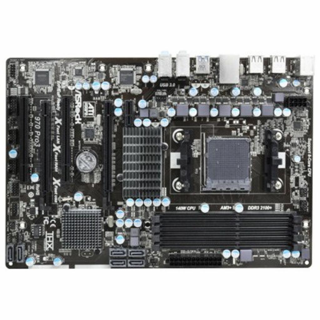 Схема стабілізації напруги процесора зроблена по 4+1-фазного дизайну. На моделі ASRock 970 Pro3 є чотири слота DIMM, що підтримують оперативну пам'ять стандарту DDR3-2100 МГц. Максимальний об'єм пам'яті 32 ГБ.
