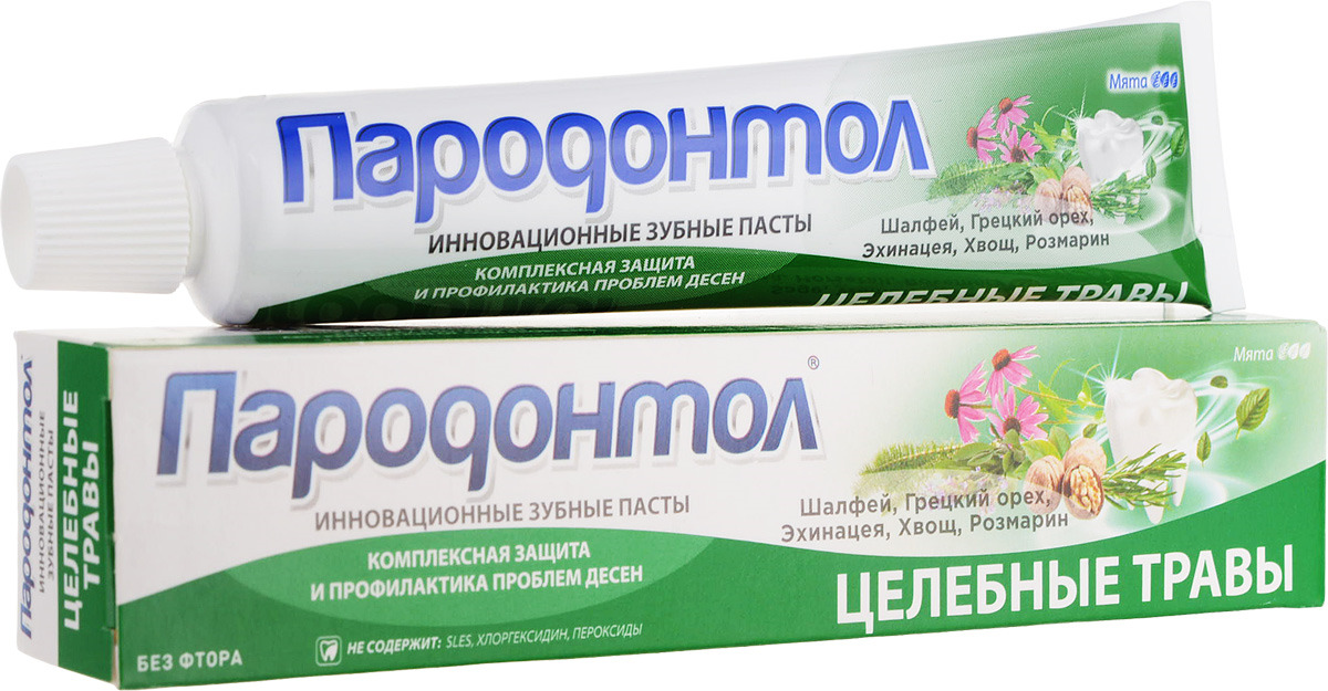 - Состав: вода, глицерин/сорбитол, диоксид кремния, ПЭГ-12, натрия лаурилсульфат, натрий-карбоксиметилцеллюлоза, ароматическая композиция, СК-СО2-экстракты шалфея, грецкого ореха, эхинацеи, розмарина, хвоща, кальция лактат, тринатрийфосфат, карбомер, диоксид титана, метилпарабен, натрия сахарин, лимонен, эвгенол.