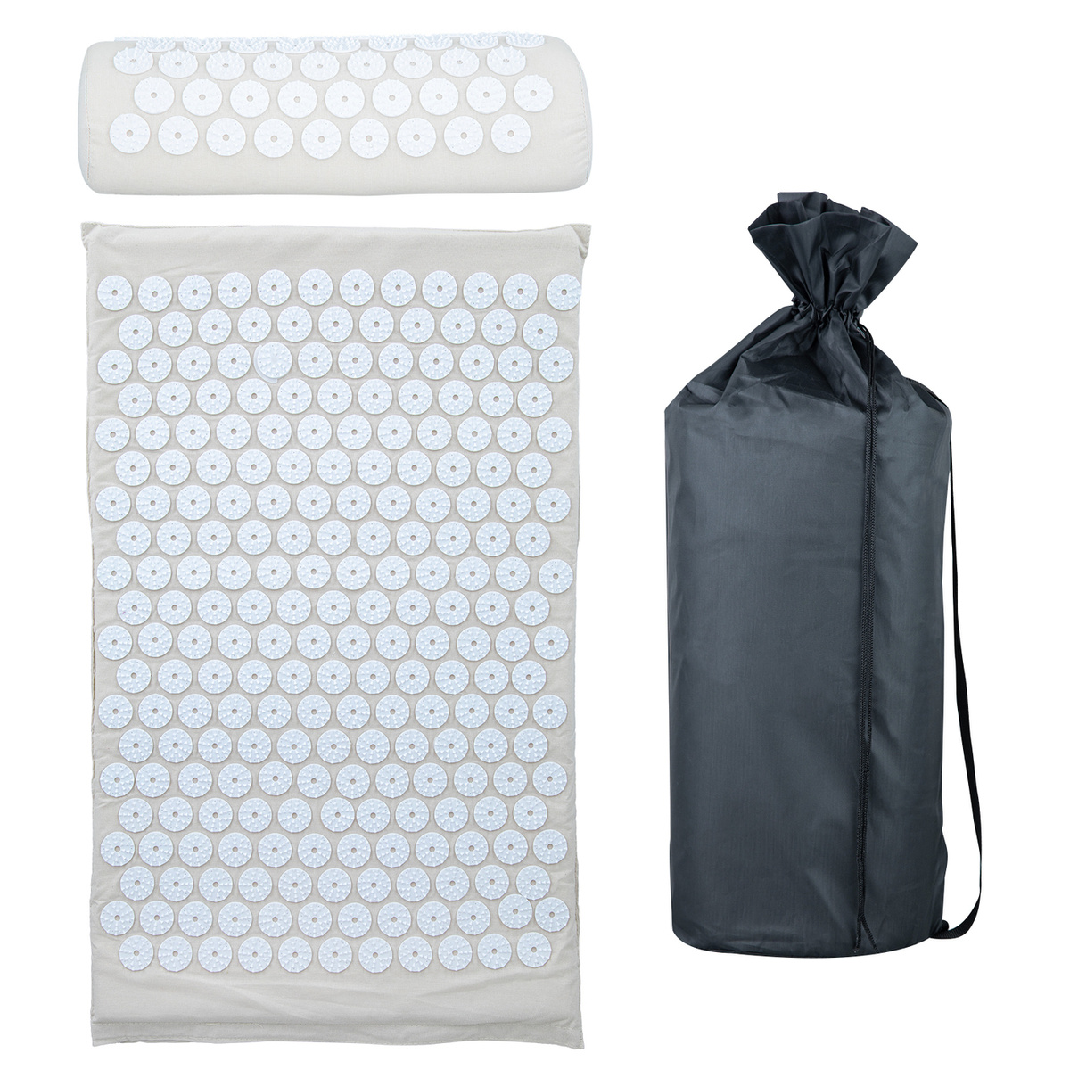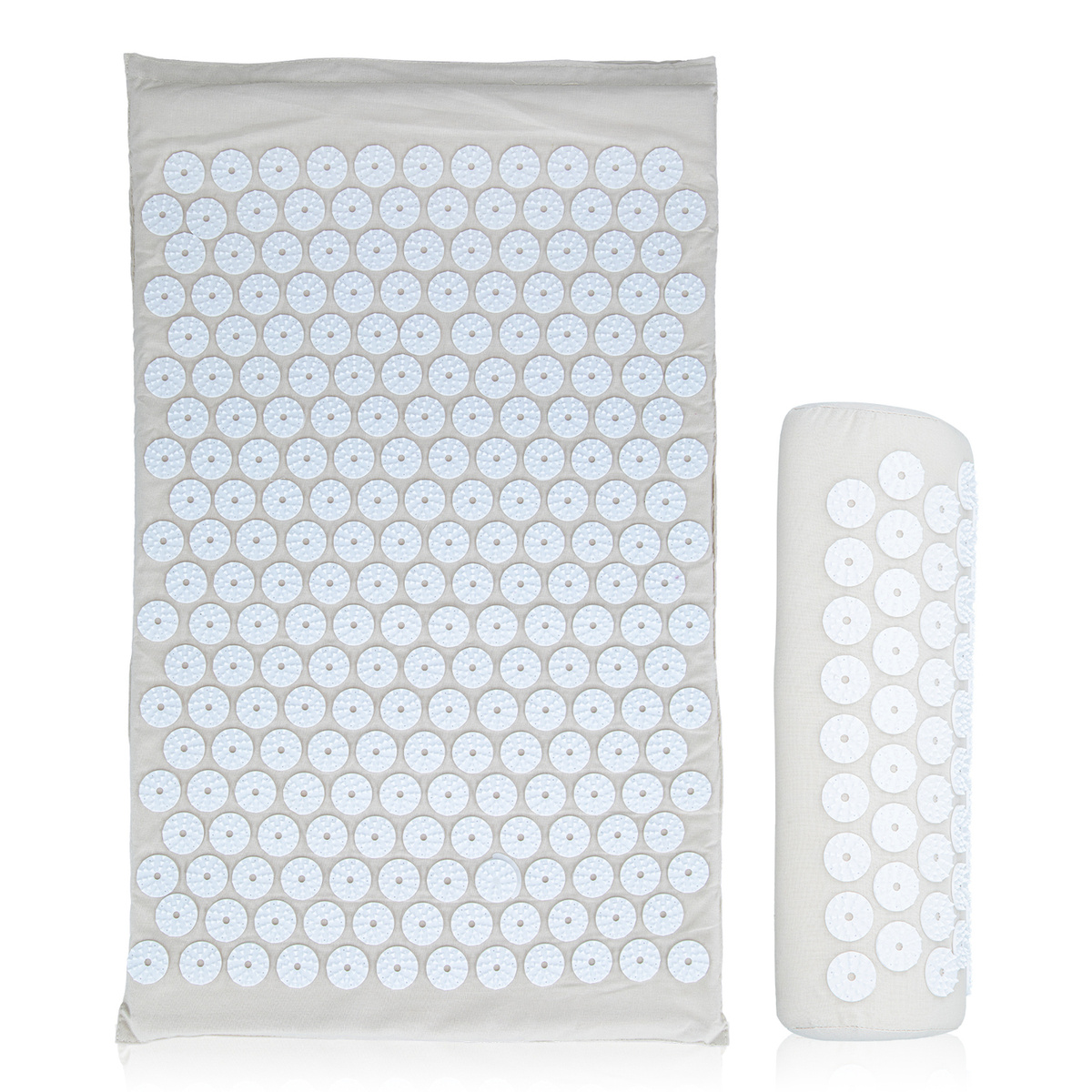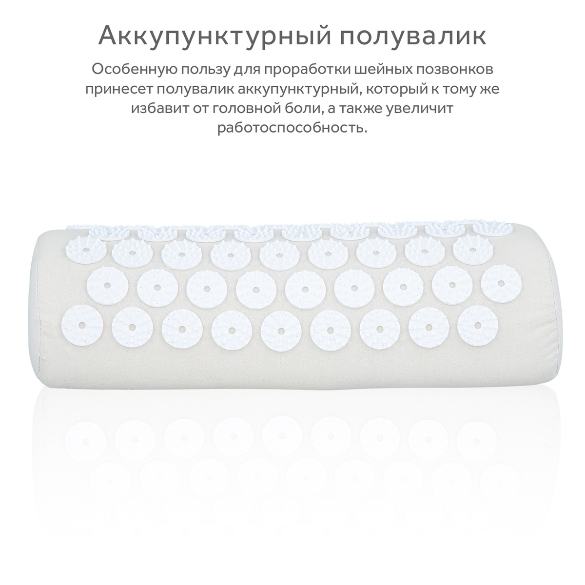 Массажный акупунктурный коврик Goodly Acupuncture, массажер иппликатор на мягкой подложке и валик, в мешочке, бежевый