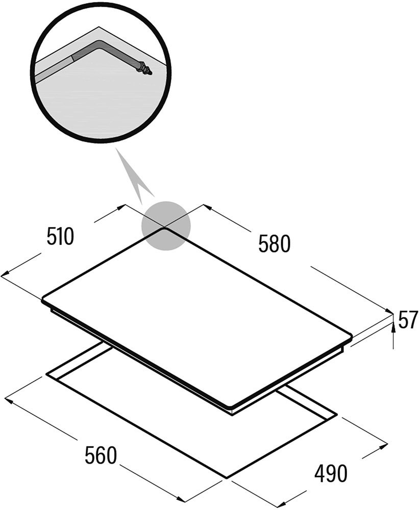 Газовая варочная панель, количество конфорок 4, wOK-конфорка, материал поверхности эмалированная сталь, управление поворотные переключатели, электроподжиг конфорок автоматический, решетки чугунные, газ-контроль, ширина встраивания 56 см.