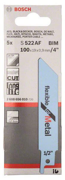 Сабельное пильное полотно S 522 AF Flexible for Metal предназначено для компактных пил