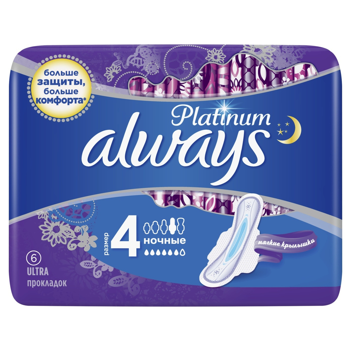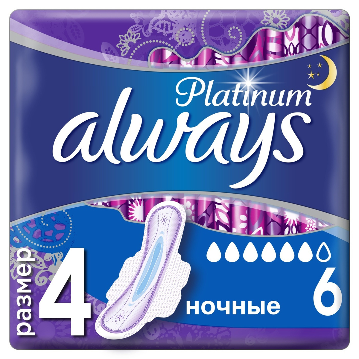 Always Platinum Ночные (Размер 4) Гигиенические Прокладки С Крылышками 6шт.