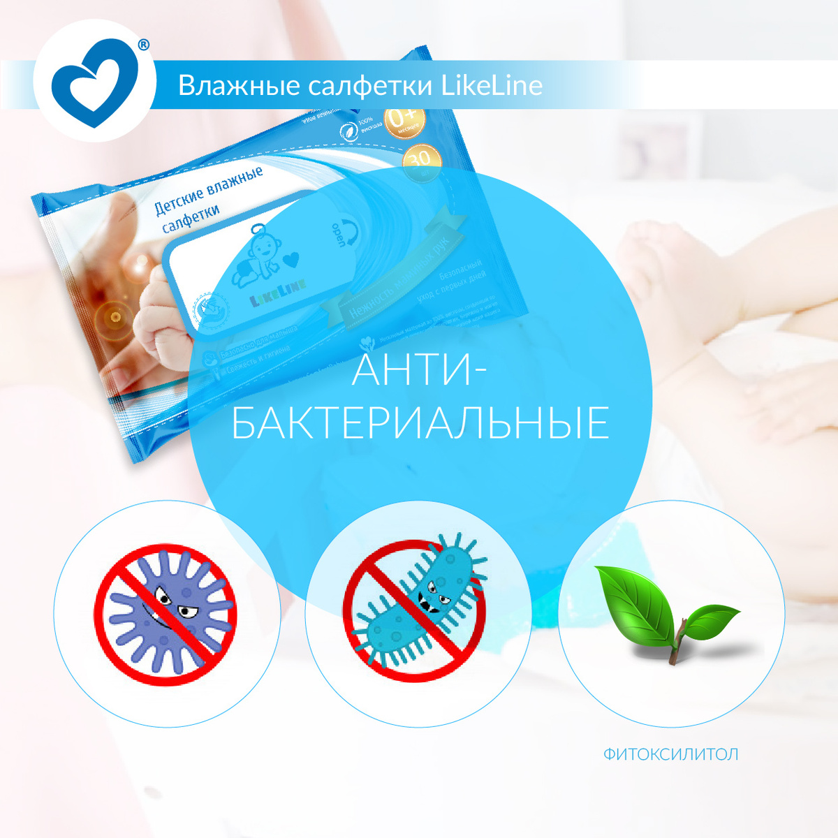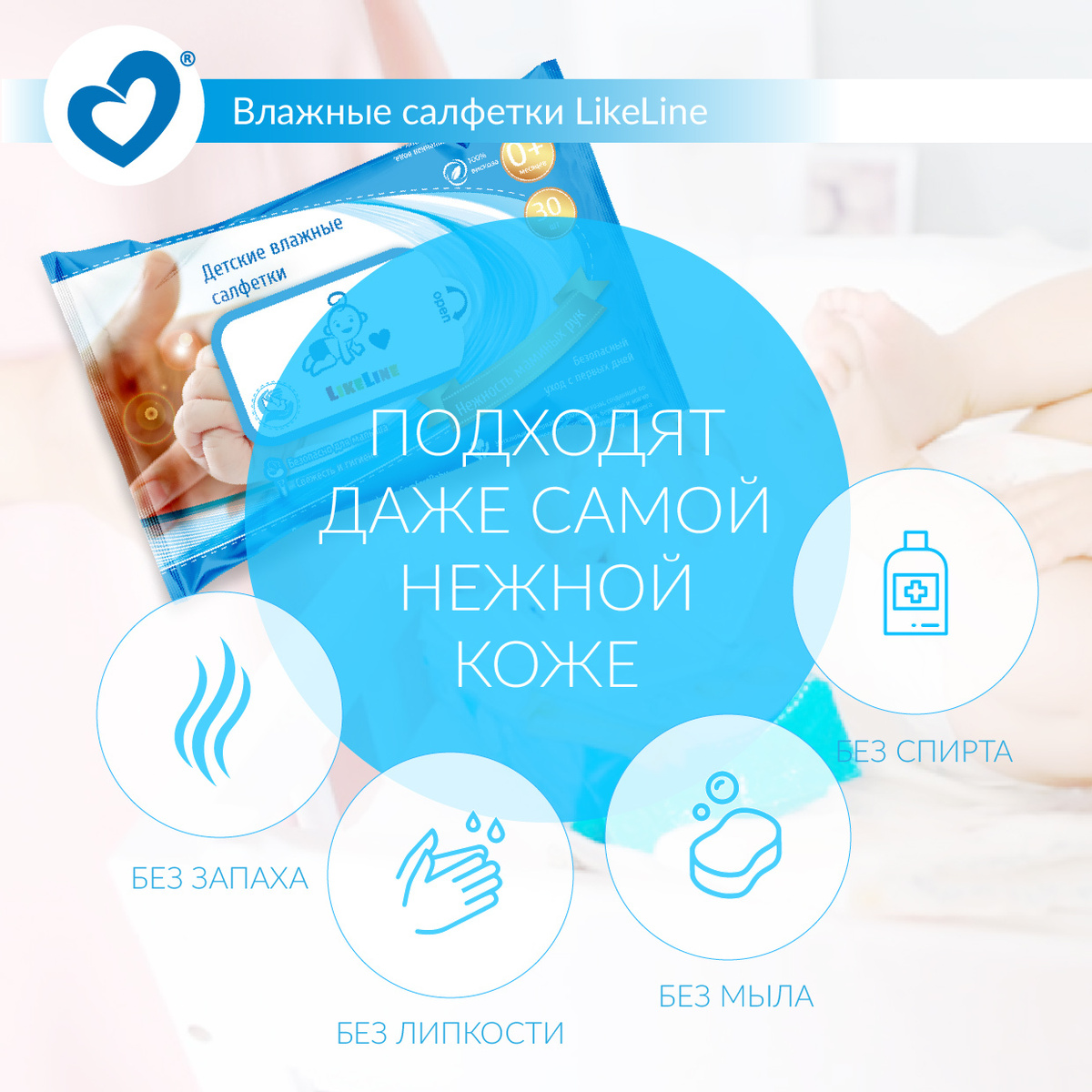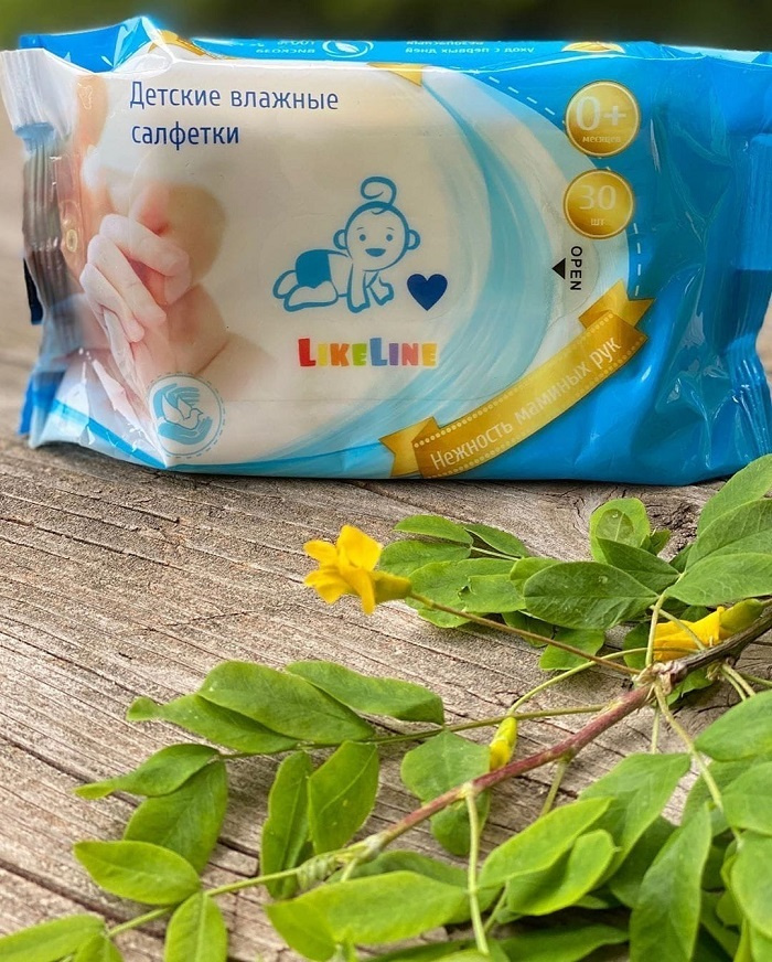 Салфетки влажные детские без запаха LikeLine Wipes 100% вискоза (биоразлагаемые)