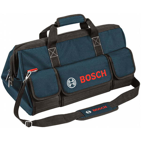 Cумка Bosch 1600A003BJ используется для хранения и транспортировки инструмента. Сумка имеет 8 карманов для хранения мелких инструментов и оснастки: 3 наружных и 5 внутренних. Изготовлена из прочного полиэстра, оснащена накладками для защиты дна и нижней части сумки. Для безопасности эксплуатации сумка оснащена светоотражающими элементами. Для удобства при переноски имеется наплечный ремень. Грузоподъемность: до 15 кг