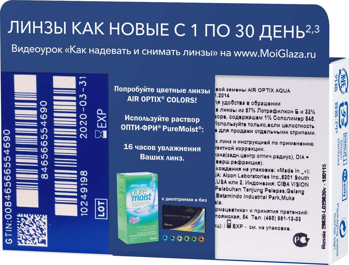 Контактные линзы Alcon "Air Optix Aqua" Ежемесячные, -7.25 / 14.2 / 8.6, 6 шт.