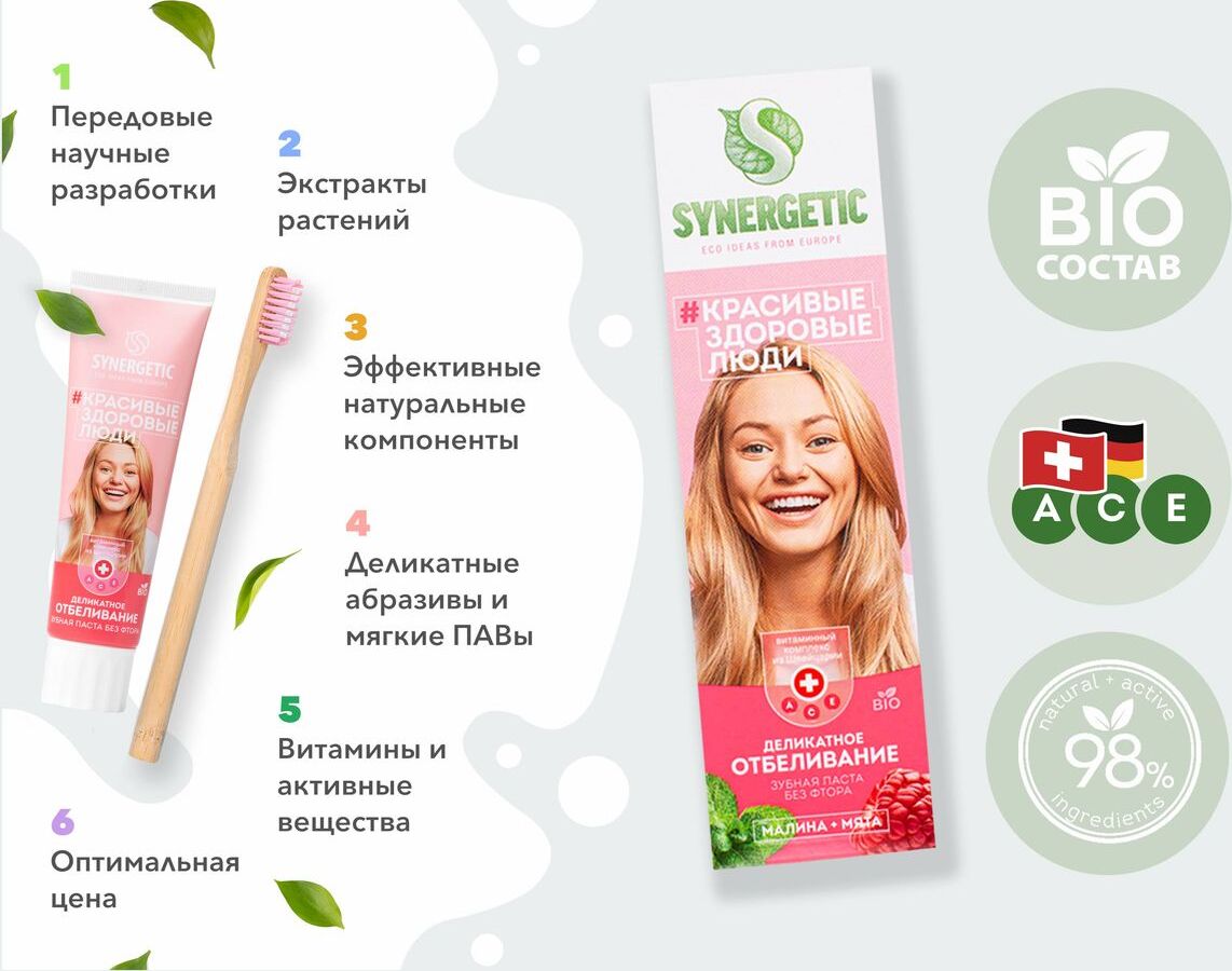 Зубная паста Synergetic Деликатное отбеливание, 100 г