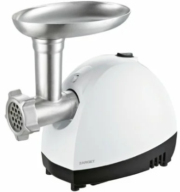 Мясорубка мощностью 1000 Вт, система реверса, насадки: для приготовления колбас, для шинковки, кеббе, терка.