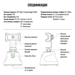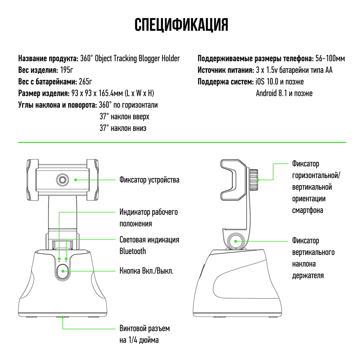 Автоматический 360 держатель Dorten Auto 360 Object Tracking Blogger Holder Черный