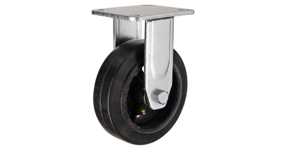 Колесо обрезиненное большегрузное неповоротное FCd46 100 мм (колесная опора, ролик) принадлежит к серии большегрузных колес. Ободная основа неповоротной большегрузной обрезиненной колесной опоры (колеса) FCd46 100 мм производится из чугуна. С целью обеспечения плавного и мягкого хода чугунный обод снабжен штуцером для периодической смазки колеса (ролика). Контактный слой неповоротных обрезиненных большегрузных колесных опор FCd46 100 мм изготовлен из черной резины. Осевой механизм оснащен подшипником роликового типа. Допустимые температурные условия использования неповоротных большегрузных обрезиненных колесных опор (колес, роликов) FCd46 100 мм колеблются от -35°С до +50°С. Наружный размер неповоротных большегрузных обрезиненных колес составляет 100 мм. Предельно допустимые нагрузки на большегрузные колеса (ролика) FCd46 100 мм не превышают 140 кг.