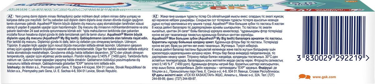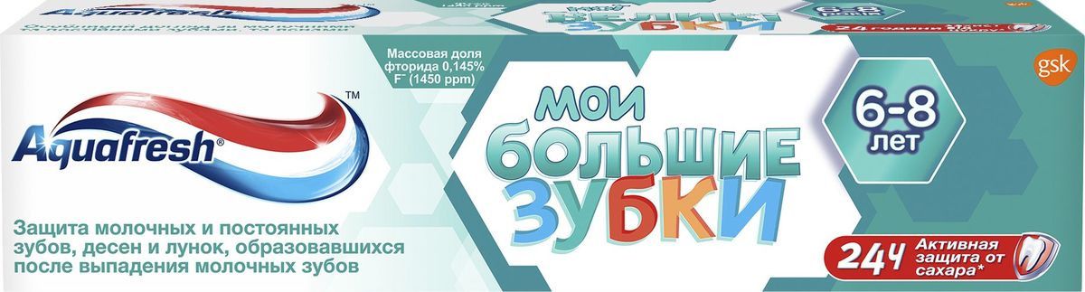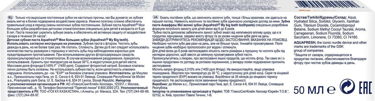 Зубная паста Aquafresh Мои большие зубки, для детей от 6 до 8 лет, 50 мл
