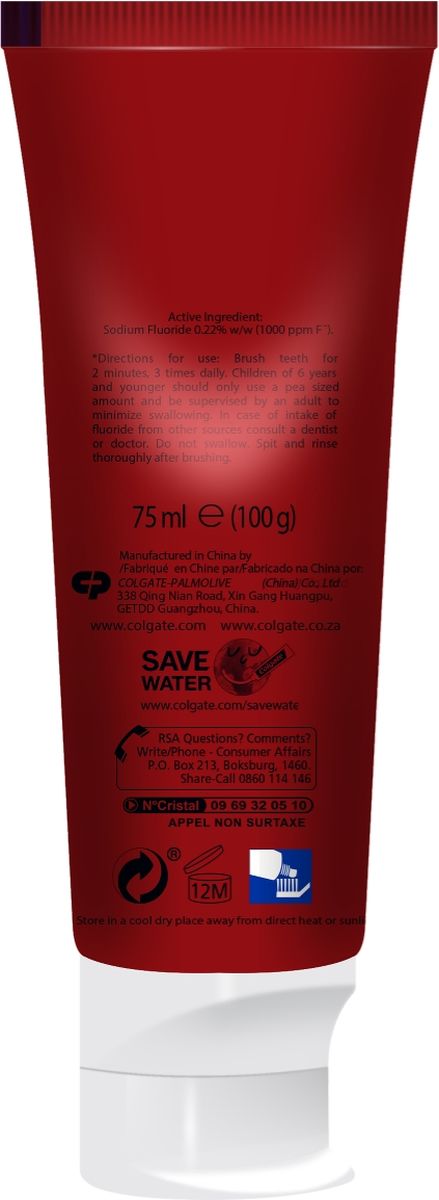 • Способ применения: Небольшое количество пасты нанесите на зубную щетку. Чистите зубы в течение 2х минут, после чего ополосните рот водой. Улыбнитесь! Не забывайте чистить зубы дважды в день и менять зубную щетку каждые 3 месяца. Детям до 6 лет рекомендуется использовать количество зубной пасты размером с горошину под присмотром взрослых. Не глотать