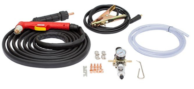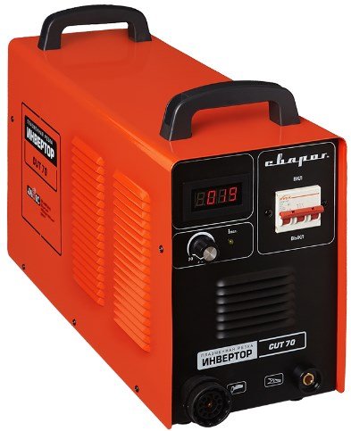 Инвертор для плазменной резки. Потребляемая мощность: 11 кВА. Продолжительность включения при максимальном токе: 60 %. Максимальный сварочный ток при непрерывной работе: 46 А. Диапазон регулирования тока реза: 20–60 А.