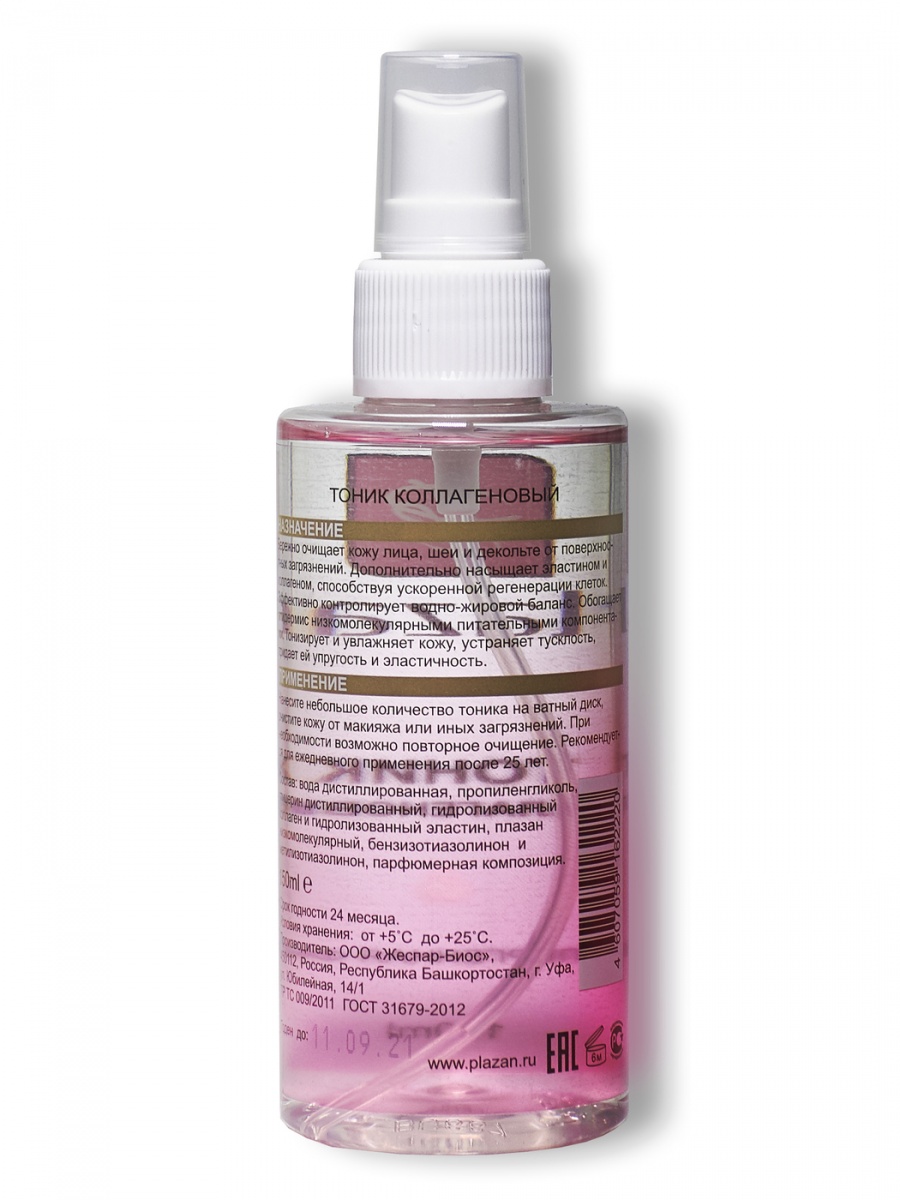 - Состав: Вода дистиллированная, пропиленгликоль, глицерин дистиллированный, гидролизированный коллаген, гидролизированный эластин, плазан низкомолекулярный, бензизотиазолинон и метилизотиазолинон, парфюмерная композиция