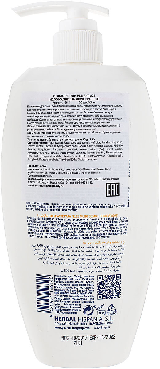 - Состав: Aqua (Water), Urea, Aloe barbadensis leaf juice, Paraffinum liquidum, Cetearyl alcohol, Glycerin, Butyrospermum parkii (Shea) butter, Glyceryl stearate, PEG-100 Stearate, Ubiquinone, Panthenol, Laureth-9, Avena sativa (Oat) kernel extract, Acrylates/C10-30 Alkyl acrylate crosspolymer, Carnitine, Parfum, Lecithin, Phenoxyethanol, Citric acid, Tocopheryl acetate, Tetrasodium EDTA, Triethanolamine, Chlorphenesin, Tocopherol, Potassium sorbate, Trisodium EDTA, Sodium benzoate