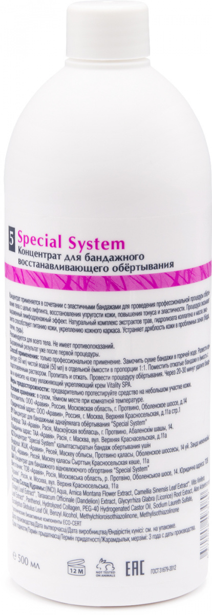 - Состав: (INCI) Aqua, Arnica Montana Flower Extract, Camellia Sinensis Leaf Extract*, Vitis Vinifera (Grape) Leaf Extract*, Taraxacum Officinale (Dandelion) Extract, Glycyrrhiza Glabra (Licorice) Root Extract, Aloe Arberescens Leaf Extract*, Panthenol, Hydrolyzed Collagen, PEG-40 Hydrogenated Castor Oil, Sodium Laureth Sulfate, Eucalyptus Globulus Leaf Oil, Benzyl Alcohol, Methylchloroisothiazolinone, Methylisothiazolinone