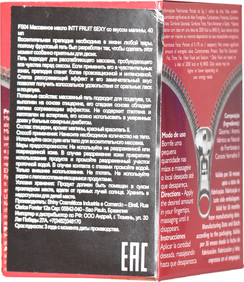 Массажное масло для поцелуев INTT FRUIT SEXY Raspberry с разогревающим эффектом и ароматом малины, 40 мл.