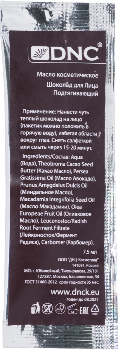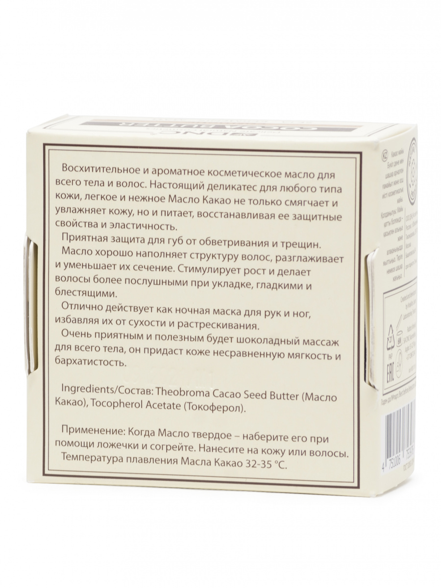 • Состав: Масло какао: Theobroma Cacao Seed Butter (Масло Какао), Tocopherol Acetate (Токоферол). Подарок в комплектации может быть разный: Маска для проблемной кожи 15 мл ИЛИ Шоколад для лица 7,5 мл Маска для проблемной кожи: Kaolin (Белая Глина), Aqua (Минеральная Вода), Avena Sativa Kernel (Овес), Citrus Limon Juice (Лимонный Сок), Peppermint Oil (Масло Мяты), Melaleuca Alternifolia Leaf Oil (Масло Чайного Дерева), Punica Granatum Seed Oil (Масло Виноградных Косточек), Melissa Oil (Масло Мелиссы), Salvia Officinalis Oil (Масло Шалфея), Leuconostoc/Radish Root Ferment Filtrate (Леуконосток/Фермент Редиса), Laminaria Extract (Экстракт Водорослей), Citrus Aurantium Dulcis Extract (Экстракт Апельсиновой Цедры), Sodium Bicarbonate (Сода); ИЛИ: Шоколад для лица 7,5 мл: Aqua (Вода), Theobroma Cacao Seed Butter (Какао Масло), Persea Gratissima Oil (Масло Авокадо), Macadamia Integrifolia Seed Oil (Масло Макадамии), Prunus Amygdalus Dulcis Oil (Миндальное Масло), Olea Europeae Fruit Oil (Оливковое Масло), Leuconostoc/Radish Root Ferment Filtrate (Леуконосток/Фермент Редиса), Carbomer (Карбомер).