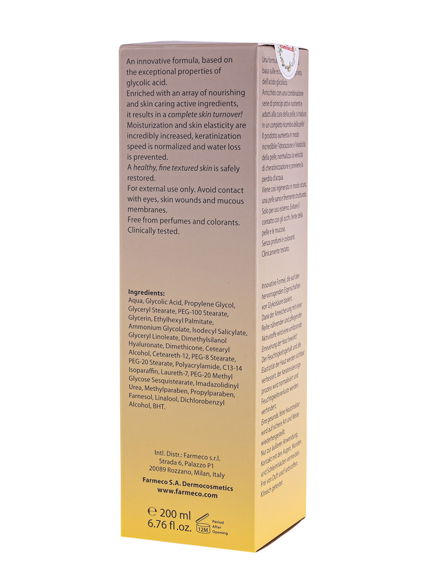 - Комплектация: Активное молочко с гликолевой кислотой находится в специальной упаковке, которая не пропускает дневной свет. Флакон упакован в бумажную оригинальную аптечную упаковку без прозрачной пленки.