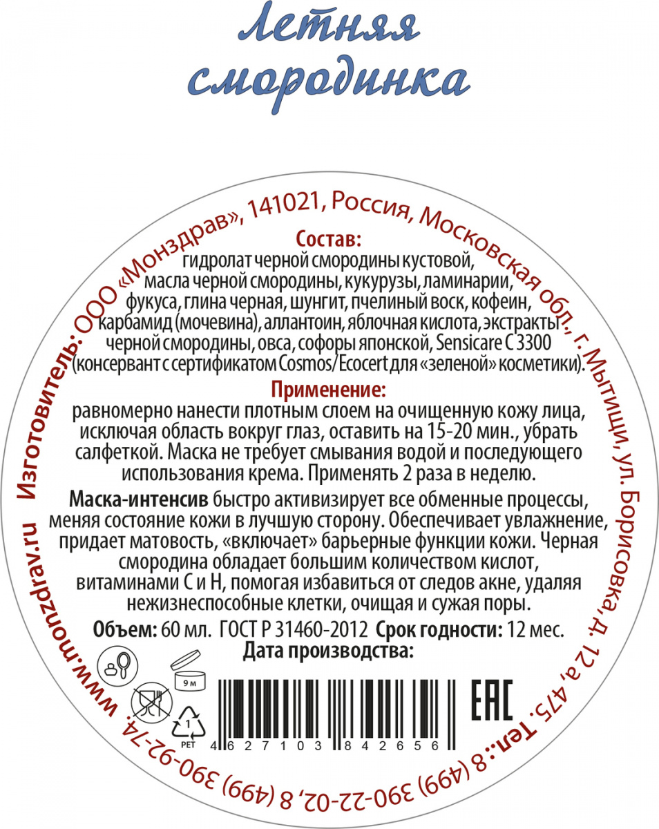 - Тип Маска косметическая