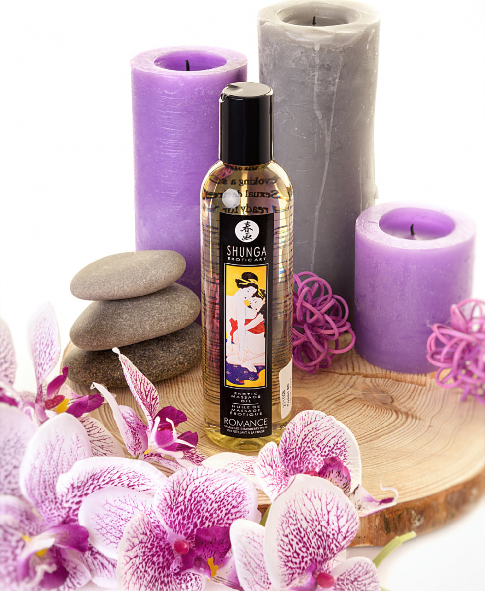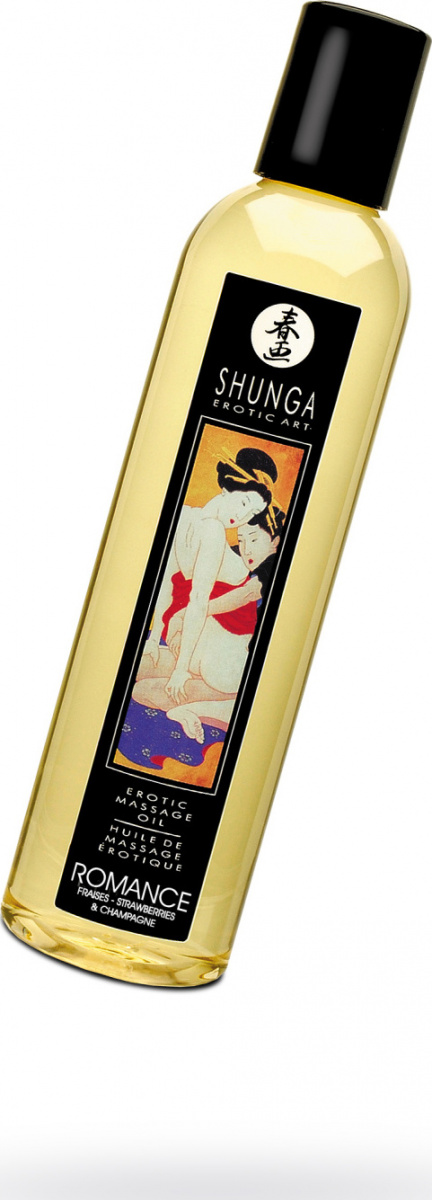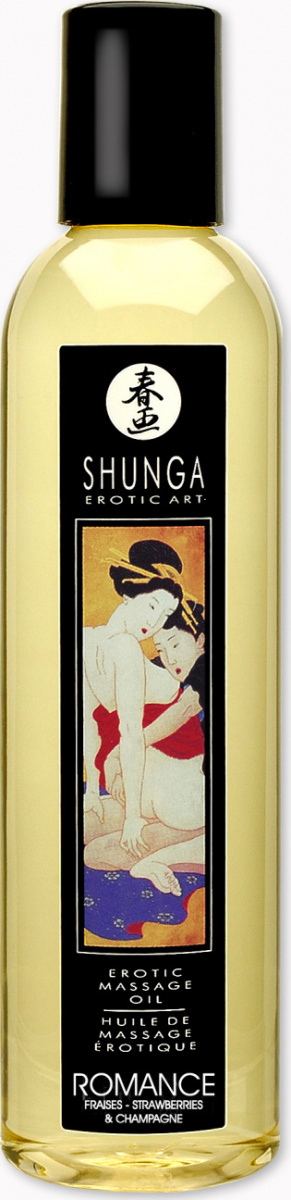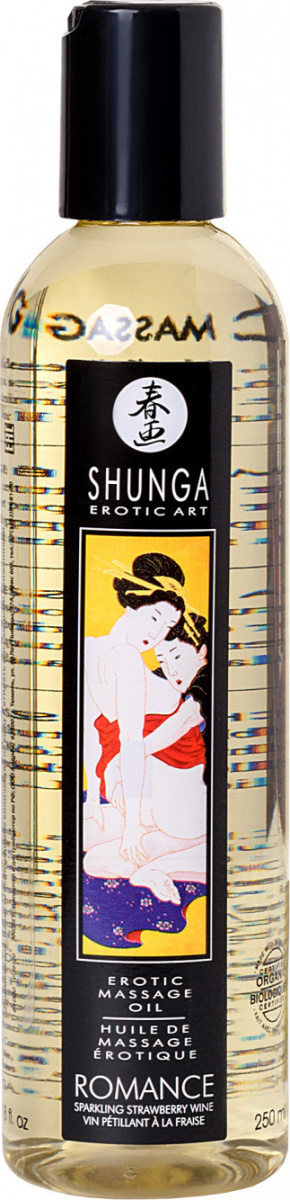 Натуральное масло для массажа Shunga Романс "Клубника и шампанское", с возбуждающим эффектом и клубничным ароматом, 250 мл.