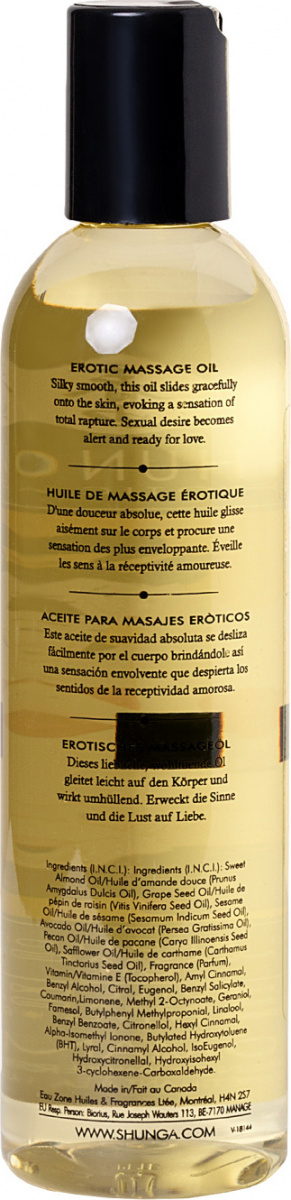 • Состав: Sweet Almond Oil/Huile d’amande douce (Prunus Amygdalus Dulcis Oil), Grape Seed Oil/Huile de pépin de raisin (Vitis Vinifera Seed Oil), Sesame Oil/Huile de sésame (Sesamum Indicum Seed Oil), Avocado Oil/Huile d’avocat (Persea Gratissima Oil), Pecan Oil/Huile de pacane (Carya Illinoensis Seed Oil), Safflower Oil/Huile de carthame (Carthamus Tinctorius Seed Oil), Fragrance (Parfum), Vitamin/Vitamine E (Tocopherol), Amyl Cinnamal, Benzyl Alcohol, Citral, Eugenol, Benzyl Salicylate, Coumarin,Limonene, Methyl 2-Octynoate, Geraniol, Farnesol, Butylphenyl Methylproponial, Linalool, Benzyl Benzoate, Citronellol, Hexyl Cinnamal, Alpha-Isomethyl Ionone, Butylated Hydroxytoluene (BHT), Lyral, Cinnamyl Alcohol, IsoEugenol, Hydroxycitronellal, Hydroxyisohexyl 3-cyclohexene-Carboxaldehyde