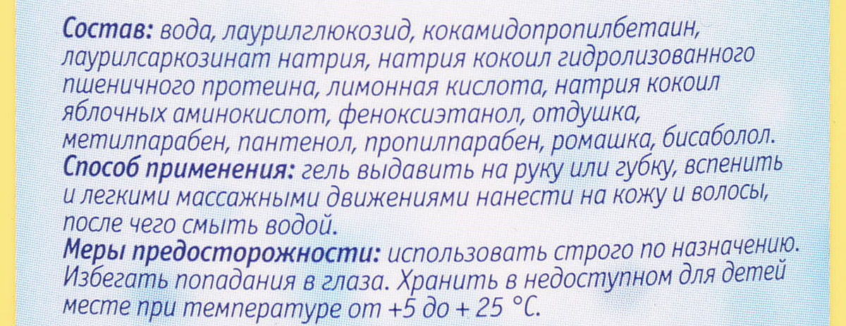 - Способ применения гель выдавить на руку или губку, вспенить и легкими массажными движениями нанести на кожу и волосы, после чего смыть водой.