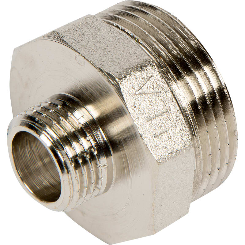 Ниппель переходной Valtec, наружная-наружная резьба, 1 1/4"х1/2", никелированная латунь