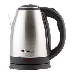 Электрочайник NORMANN AKL-133 мощностью 1800 Вт выполнен из нержавеющей стали. Вместительный, его объем составляет 1,8 л. Имеет индикацию включения, кнопку на ручке для открывания крышки и подставку с возможностью вращения на 360˚.