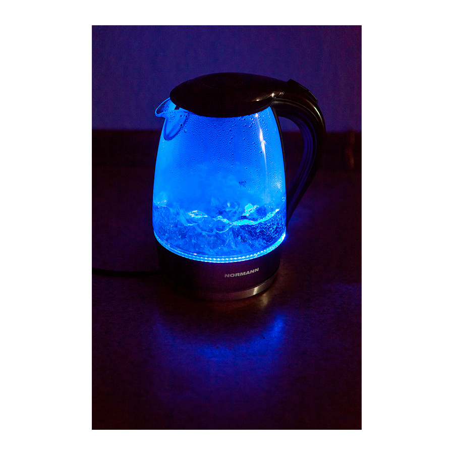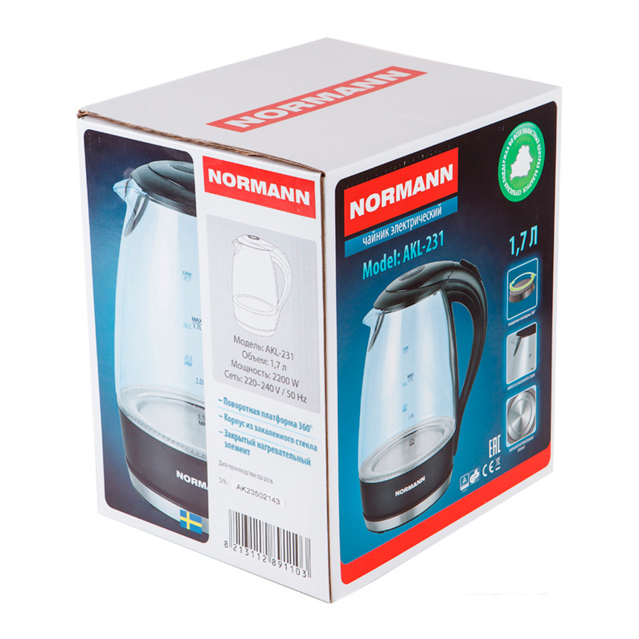 Электрочайник NORMANN AKL-231 предназначен для подогрева, кипячения воды, приготовления горячих напитков. Корпус изготовлен из стекла, которое не изменяет вкусовые качества жидкости и позволяет следить за уровнем воды. Закрытый нагревательный элемент обеспечивает равномерный обогрев и защищен от образования накипи. Возможность вращать чайник на подставке и наличие индикатора работы обеспечивают удобство эксплуатации. В качестве индикации включения используется светодиодная подсветка.
