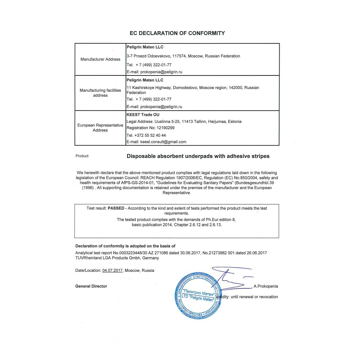 • Тип Пеленка одноразовая