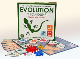 Подарочное издание включает базовый набор «Эволюция», дополнения «Время летать» и дополнения «Континенты», а также 18 специальных карт подарочного набора. Вы можете играть как базовым набором отдельно, так и смешивая его с любым дополнением или любой комбинацией дополнений. Рекомендуемый возраст: 12+. Количество игроков: 2-6. Продолжительность игры: 30-60 мин.