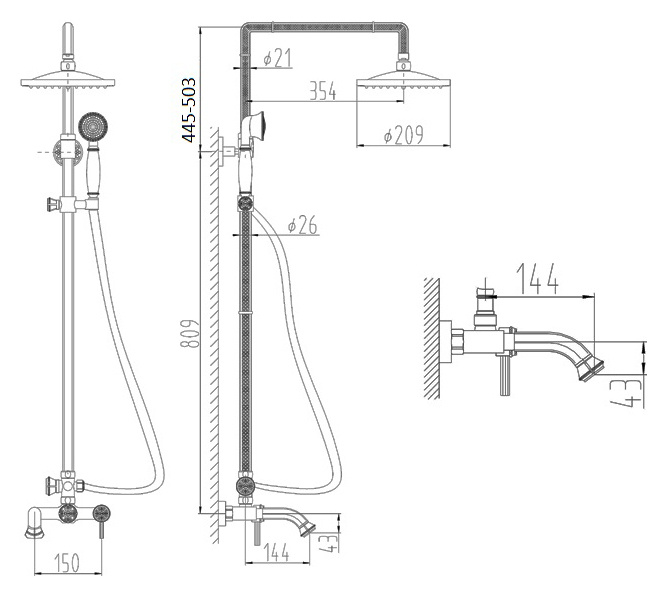 • Размер верхнего душа, мм 209