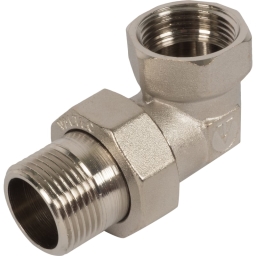 Сгон угловой американка Valtec, внутренняя-наружная резьба, 1", никелированная латунь