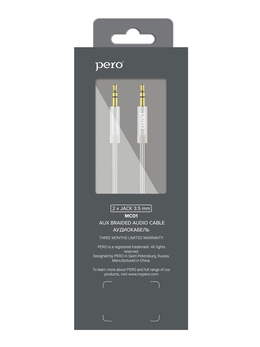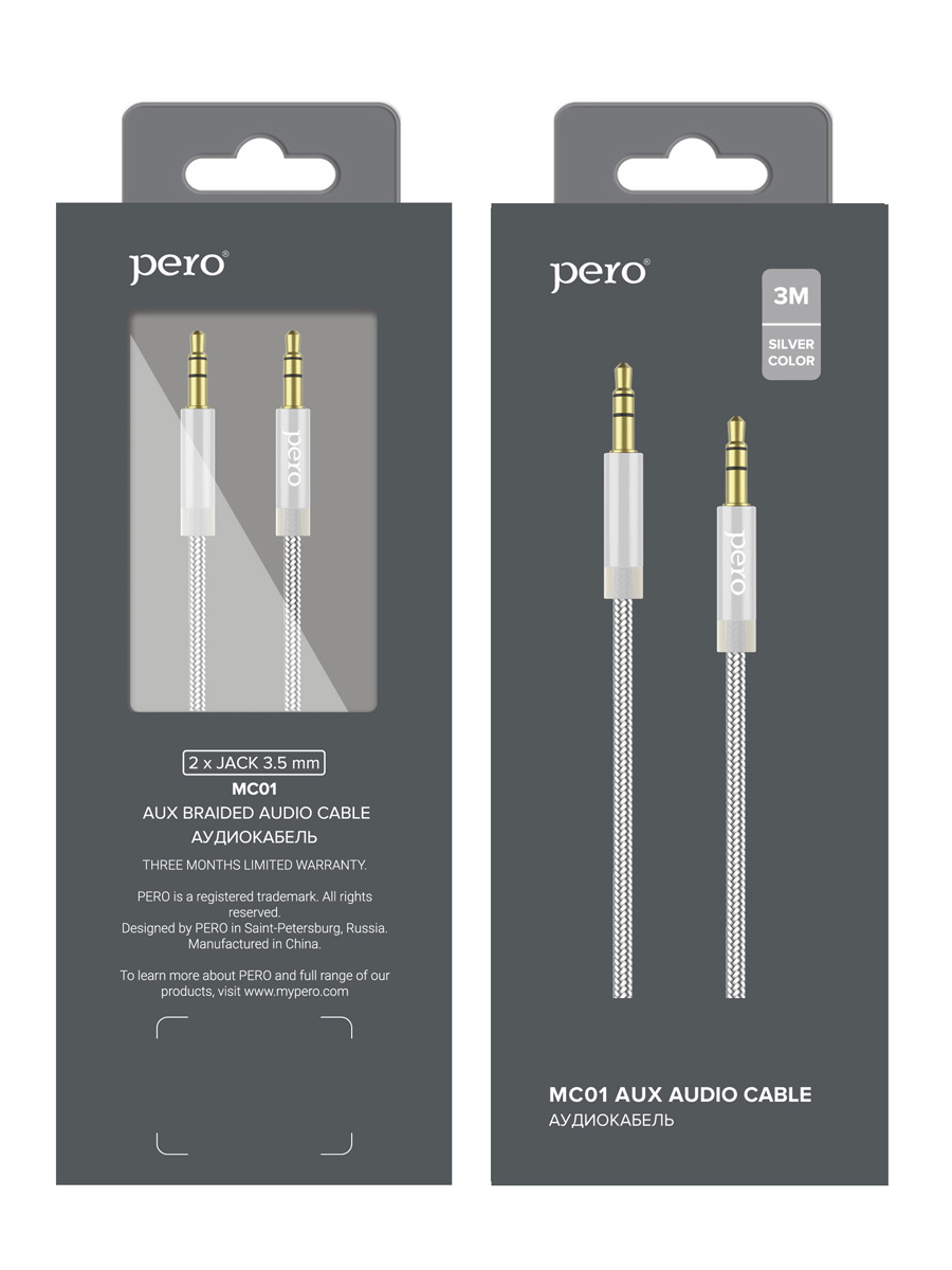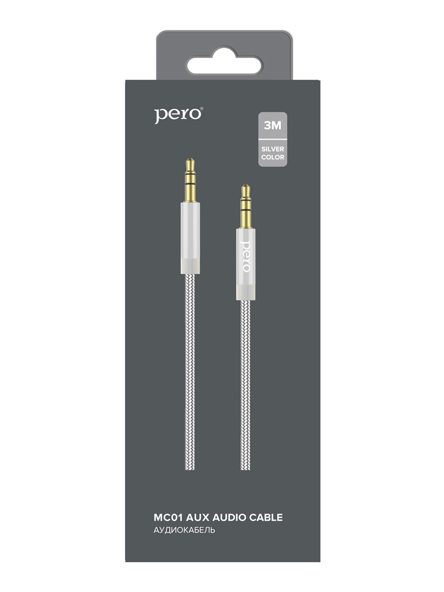 Аудио-кабель PERO MC01 2x3.5 JACK, 3м, Silver