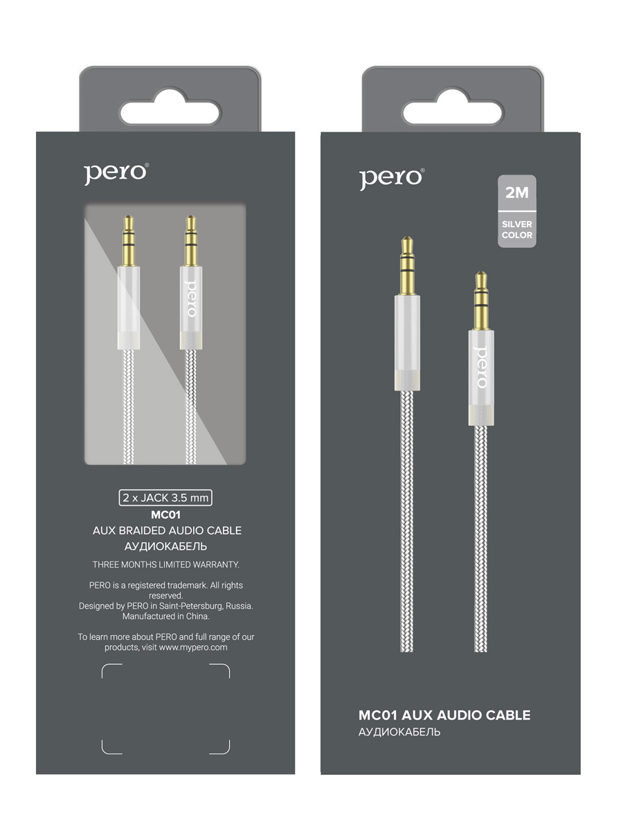 Аудио-кабель PERO MC01 2x3.5 JACK, 2м, Silver