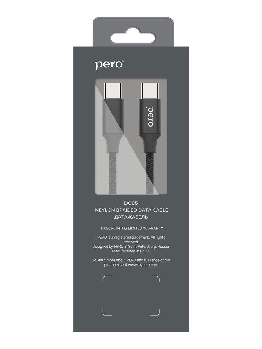 Дата-кабель PERO DC05 Type-C to Type-C, 3А, 60W, 2м, Black