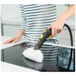 Пароочиститель SC 2 EasyFix очищает практически все твердые поверхности в доме без применения химических средств. Пароочиститель Керхер удаляет стойкие загрязнения, известняковые отложения и жировые пятна. Тщательная очистка паровым очистителем Kärcher убивает 99,99% всех известных бытовых бактерий на твердых поверхностях в доме. Новая насадка для пола EasyFix снабжена застежкой-липучкой, позволяющей закреплять микроволоконные салфетки, не наклоняясь к полу – достаточно просто прижать насадку к салфетке. После окончания работы салфетка удаляется без контакта с грязью – надо лишь наступить на ее язычок и приподнять насадку.