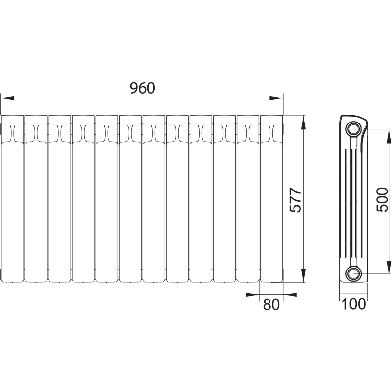 Радиатор Rifar Monolit 500, 12 cекций, боковое подключение, 500 мм,биметалл