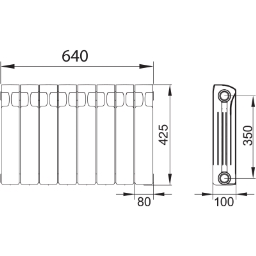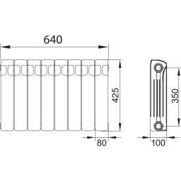 Радиатор Rifar Monolit, 8 секций, боковое подключение, 350 мм, биметалл