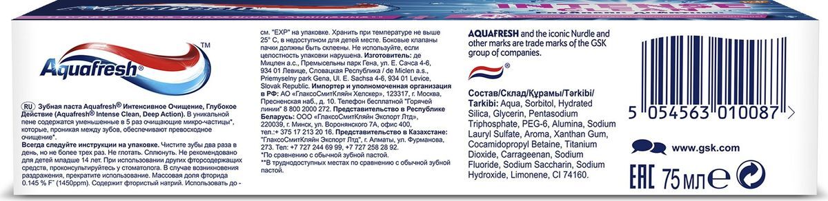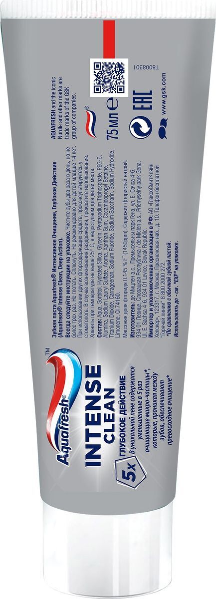 Зубная паста Aquafresh Интенсивное очищение, глубокое действие, 75 мл
