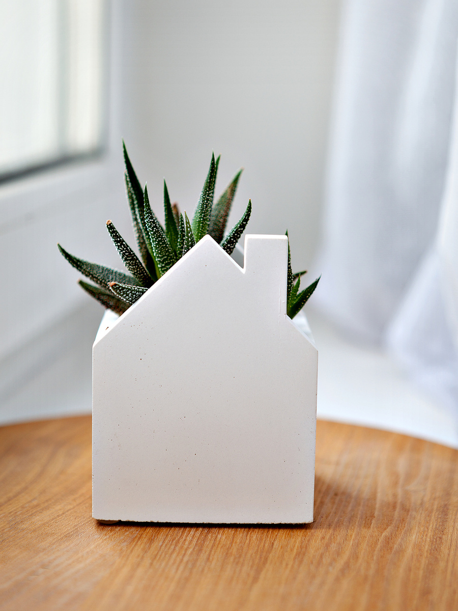 Горшок из бетона для цветов "ДОМ, ДжекаГрин" (белый)