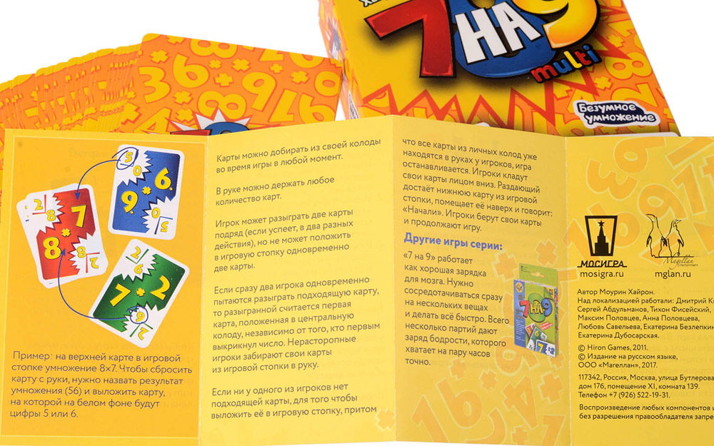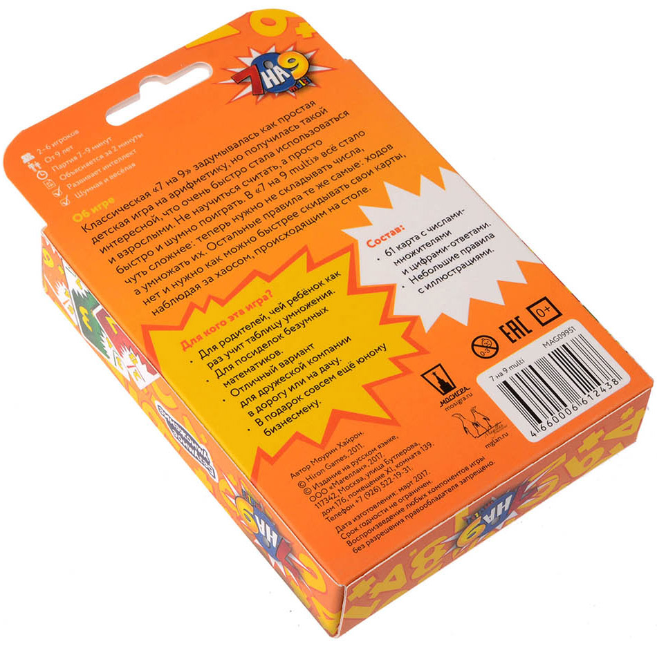 Классическая «7 на 9» задумывалась как простая детская игра на арифметику, но получилась такой интересной, что очень быстро стала использоваться и взрослыми. Не научиться считать, а просто быстро и шумно поиграть. В «7 на 9 multi» все стало чуть сложнее: теперь нужно не складывать числа, а умножать их.