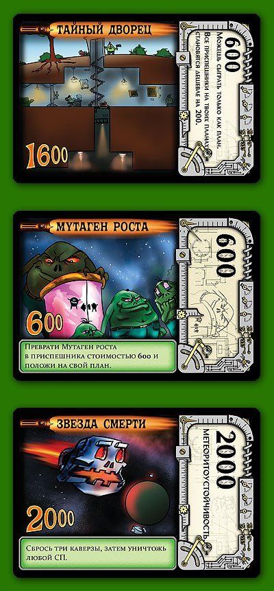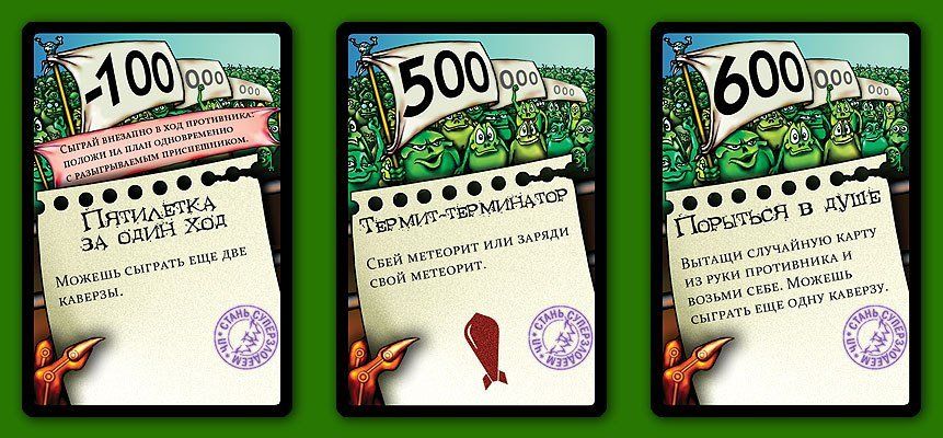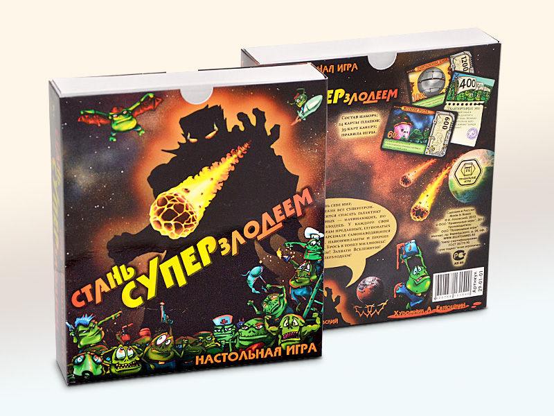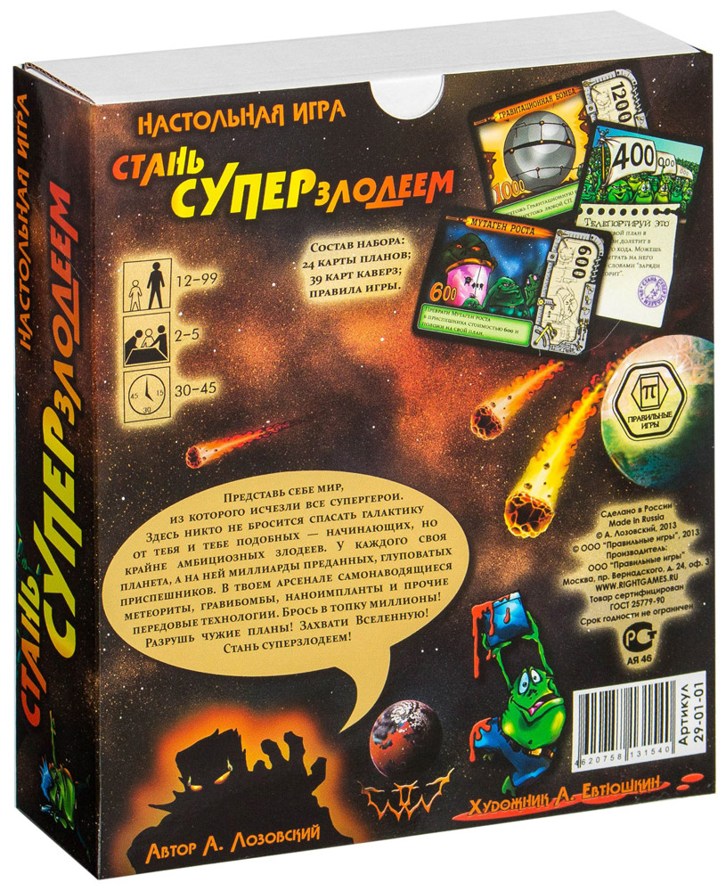 Юмористическая карточная игра, участники которой воплощают в жизнь злодейские планы и подстраивают друг другу каверзы. Цель каждого из игроков - первым реализовать секретные проекты на общую сумму 5000 очков. Для этого участники прибегают к помощи верных приспешников, разыгрывают полезные для себя и вредные для соперников карты, а также запускают друг в друга разрушительные метеориты.