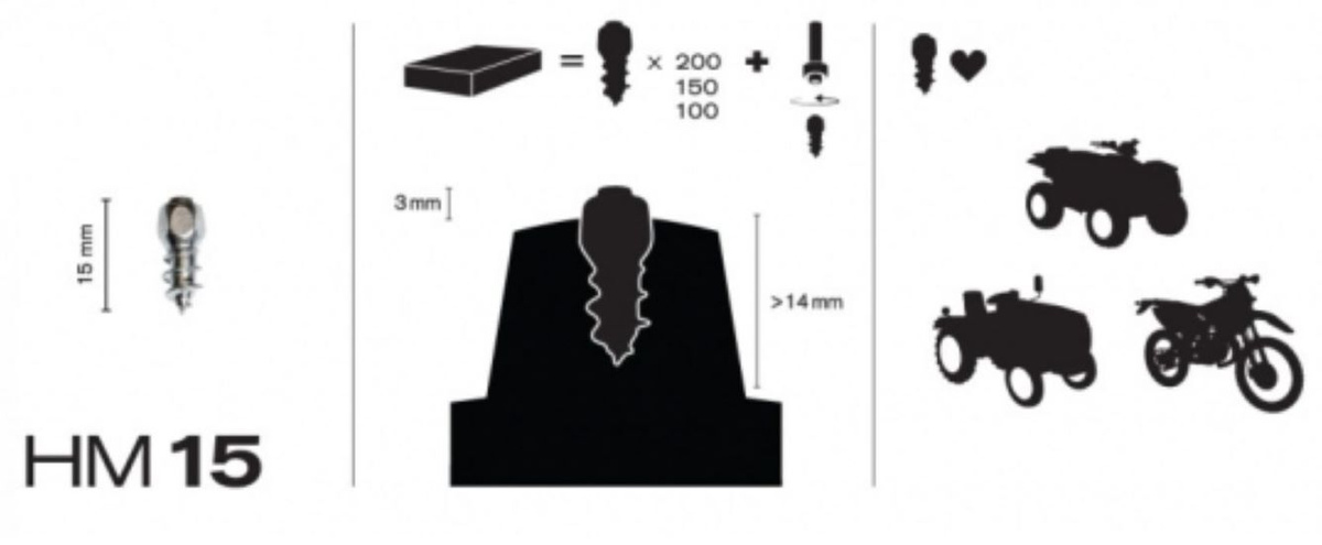 Шипы противоскольжения для спецтехники MaxiGrip HM15, вкручиваемые, упаковка 100 шт. в блистере