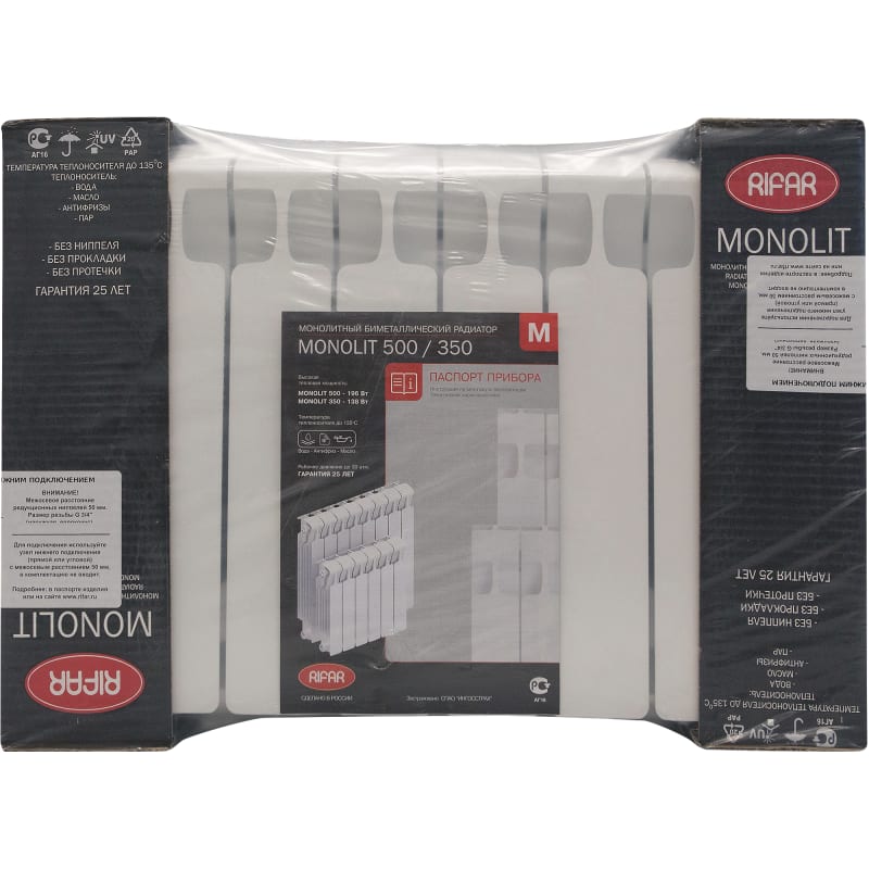Радиатор Rifar Monolit, 8 секций, нижнее левое подключение, 350 мм, биметалл