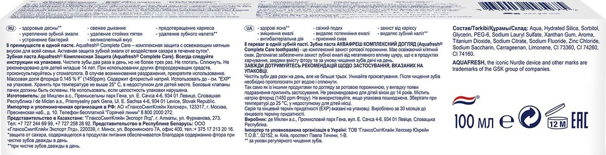 Зубная паста Aquafresh Комплексная защита, 100 мл
