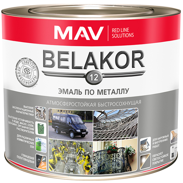 Эмаль BELAKOR 12 по металлу атмосферостойкая быстросохнущая RAL 9004 черная полуглянцевая 2,4л (2кг)