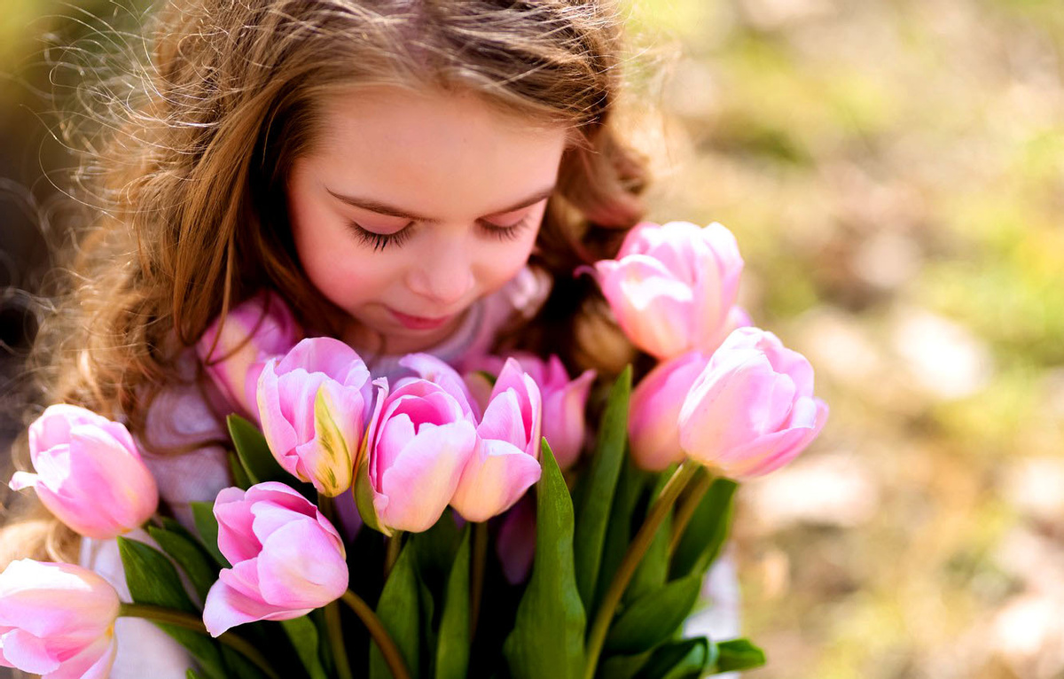 Картина по номерам Девочка с нежно-розовыми тюльпанами 40x50 на подрамнике